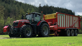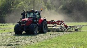 Hervorragende Erfahrungen habe ich mit dem mähen einer "Halbschwad" gemacht. Es wird mit hilfe der Schwadbänder jeweils eine Seite zusammengelegt, so dass 15,5m Futter auf knapp 10m zusammenliegen. Nach dem Trocknen wird diese "Halbschwad" mit dem abgestimmten Mittelschwader zusammengelegt. Der Schwader kann auch gemietet werden. Ladezeiten werden durch die große Schwad verkürzt und die Futterverschmutzung reduziert. Auf Wunsch ist "Control Traffic" möglich, wobei der Ladewagen jeden Schnitt über die gleiche Spur fährt.