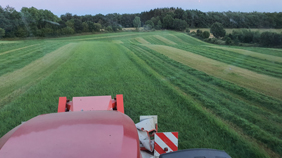Hervorragende Erfahrungen habe ich mit dem mähen einer "Halbschwad" gemacht. Es wird mit hilfe der Schwadbänder jeweils eine Seite zusammengelegt, so dass 15,5m Futter auf knapp 10m zusammenliegen. Nach dem Trocknen wird diese "Halbschwad" mit dem abgestimmten Mittelschwader zusammengelegt. Der Schwader kann auch gemietet werden. Ladezeiten werden durch die große Schwad verkürzt und die Futterverschmutzung reduziert. Auf Wunsch ist "Control Traffic" möglich, wobei der Ladewagen jeden Schnitt über die gleiche Spur fährt.